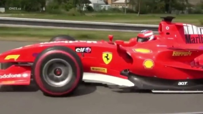 The racing car is often described as a Ferrari because of the logos on its body,but it is reportedly a a Dallara GP2/08 (Picture: Idnes)