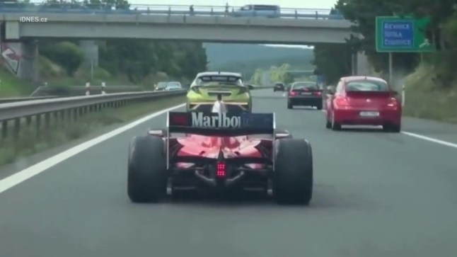 Police had received reports of a racing car seen at petrol station near Dobříš and followed him along the D4 motorway until he reached his property.
